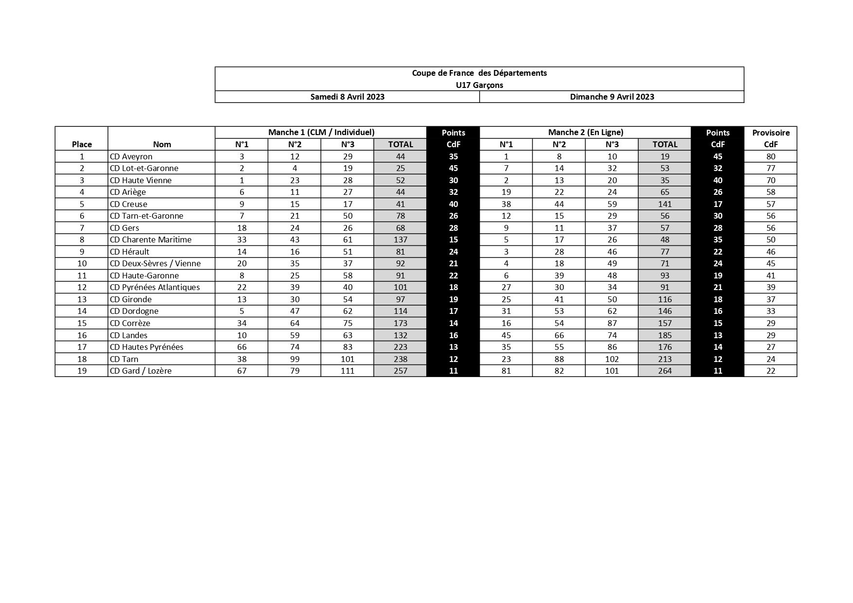 Voici les classement de la coupe de France cadets à l'issu de la manche 1 & 2 qui ont été organisées par notre club !